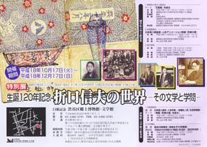 特別展 生誕120年記念 折口信夫の世界 −その文学と学問−