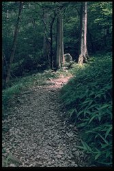 ![]() | スライド−1 これは峠へ行く道ですけれども、今私どの辺りだか分かりません。後でまた今村先生かどなたかに教えて頂ければと思うんですが、こんな道を登って行きました。 |