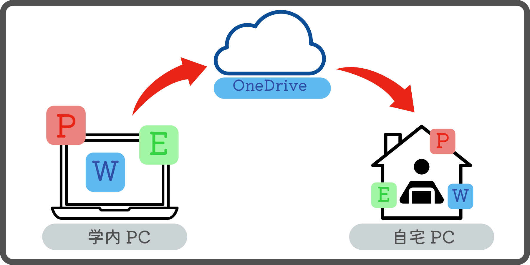 - 個人PCと学内PC間で作業を進めようとした際に発生しがちなケースです。